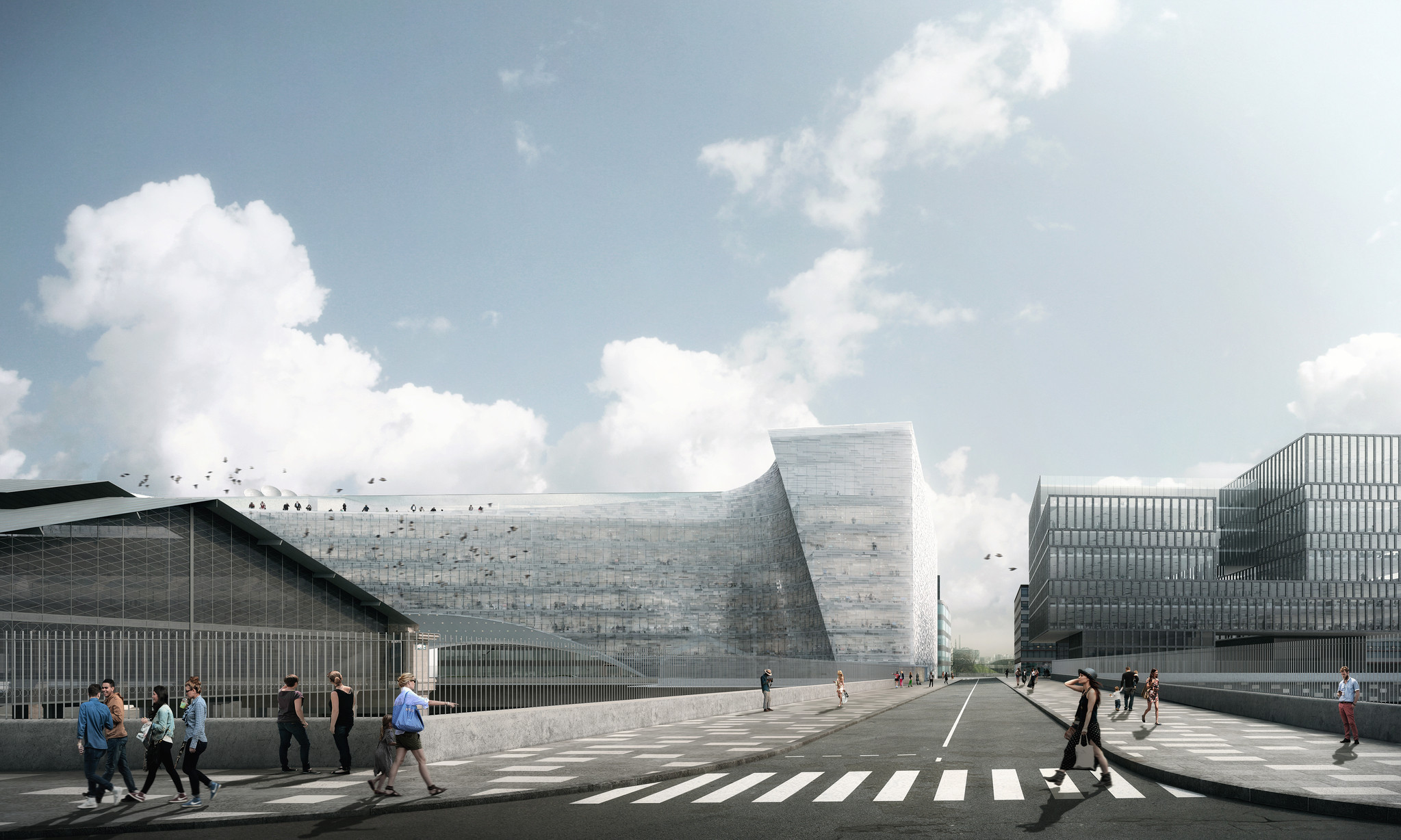 Μιας και οι σιδηροδρομικές γραμμές περνούν υπογείως κάτω από το κτήριο, το μήκους 80 μέτρων αρχιτεκτόνημα έχει την όψη μιας κοίλης δομής η οποία πατά στις δύο άκρες της σε δύο επταώροφους αρχιτεκτονικούς όγκους που συνδέονται μεταξύ τους με ένα τόξο από περίπλοκο χαλύβδινο δίκτυο.
