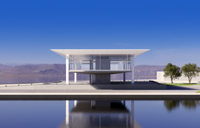 Η αρχιτεκτονική μελέτη προβλέπει τη δημιουργία ενός «διάφανου στεγάστρου» σε ένα σύγχρονο και καινοτόμο κτίριο που τοποθετεί τις βασικές του λειτουργίες σε ένα επίπεδο το οποίο αιωρείται κάτω από τη σκιά του μεταλλικού στεγάστρου.