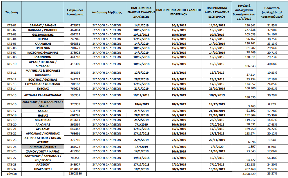 Ειδικότερα, έως τις 15 Ιουλίου από τα συνολικά 12.608.580 δικαιώματα που περιλαμβάνονται στις 24 τρέχουσες συμβάσεις, έχουν συλλεχθεί 3.198.529 δηλώσεις.