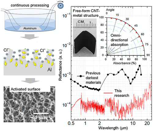 Το υλικό αποτελείται από μικροσκοπικούς νανοσωλήνες άνθρακα (CNT) κάθετα ευθυγραμμισμένους πάνω σε ένα υπόστρωμα αλουμινίου. Οι ερευνητές εκτιμούν ότι είναι θέμα χρόνου οι επιστήμονες των υλικών να σχεδιάσουν ένα υλικό που θα απορροφά το 100% του φωτός (κάτι σαν μαύρη τρύπα στο διάστημα).