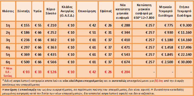 * Ειδική ασφαλιστική κατηγορία αποτελούν οι νέοι ελεύθεροι επαγγελματίες και οι αυτοτελώς απασχολούμενοι για (5) έτη από την έναρξη ασκήσεως του επαγγέλματος