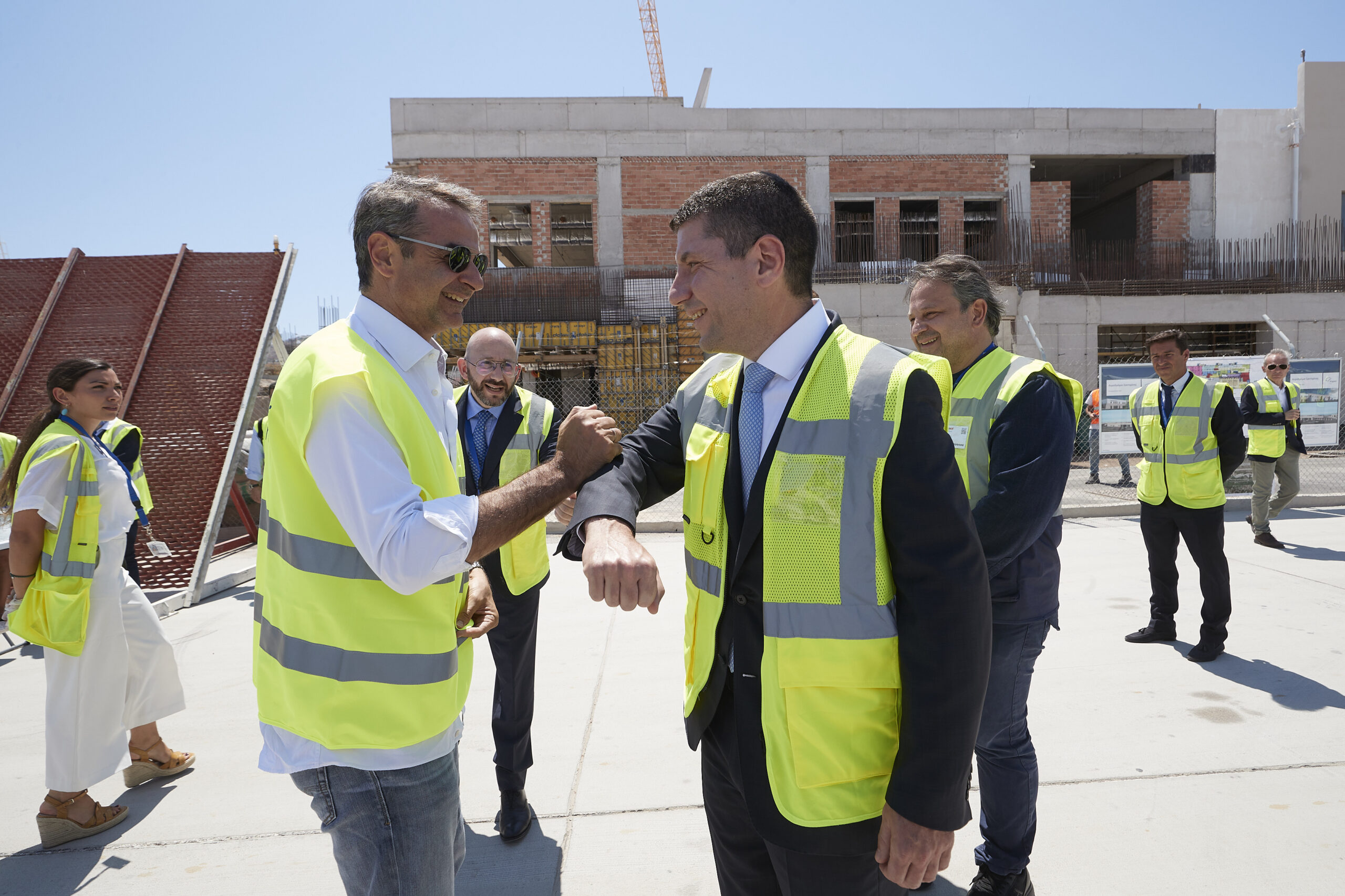 Τον Πρωθυπουργό ξενάγησαν στο εργοτάξιο ο Γενικός Οικονομικός Διευθυντής της Fraport Greece, Βαγγέλης Μπαλτάς, o Διευθυντής Λειτουργιών της εταιρείας Ηλίας Μαραγκάκης, ο υπεύθυνος του κατασκευαστικού έργου Κωνσταντίνος Θεοφανίδης και ο διαχειριστής του αεροδρομίου, Δημήτρης Παντελής.
