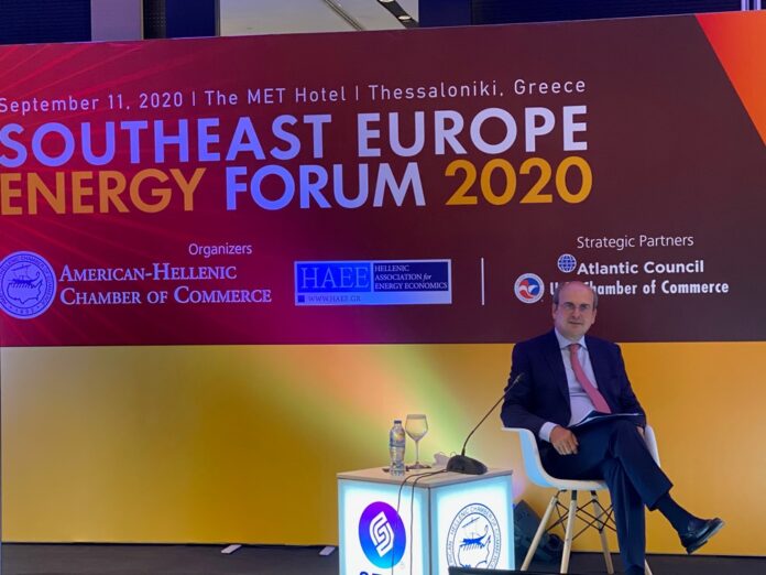 «Στο επίκεντρο της ευρύτερης στρατηγικής για την Νοτιοανατολική Ευρώπη, είναι η ενοποίηση των ενεργειακών αγορών μέσω της δημιουργίας περιφερειακών χρηματιστηρίων και της υλοποίησης μεγάλων διακρατικών έργων φυσικού αερίου και ηλεκτρισμού», συνέχισε. «Στο πλαίσιο αυτό εντάσσεται η ολοκλήρωση του Διαδρατικού Αγωγού ΤΑΡ (που αναμένεται να τεθεί σε πλήρη εμπορική λειτουργία έως το τέλος του έτους) και του ελληνοβουλγαρικού αγωγού IGB (οι εργασίες κατασκευής του οποίου αναμένεται να περατωθούν στο τέλος του 2021), η προώθηση του FSRU Αλεξανδρούπολης και του ελληνο-ιταλικού αγωγού IGI Poseidon και η υλοποίηση του East Med. Ο IGB ειδικά έχει αυξημένη σημασία καθώς μέσω της σύνδεσής του με το FSRU της Αλεξανδρούπολης μπορεί να διοχετεύσει LNG στη Νότια και Κεντρική Ευρώπη, συμπεριλαμβανομένων των αναδυόμενων αγορών των Δυτικών Βαλκανίων».