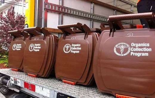 -790 τεμάχια πλαστικών καφέ κάδων οργανικών απορριμμάτων 240 λίτρων.