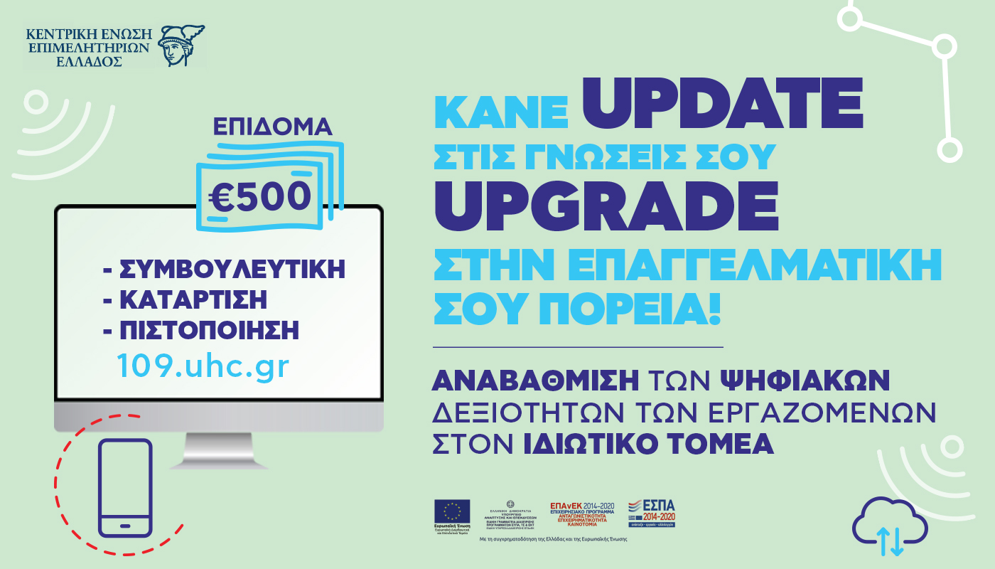 Πηγή Εικόνας: KEEEΈνα νέο επιδοτούμενο πρόγραμμα αναβάθμισης των ψηφιακών δεξιοτήτων για όλους τους εργαζόμενους στον ιδιωτικό τομέα υλοποιεί η Κεντρική Ένωση Επιμελητηρίων Ελλάδος.
