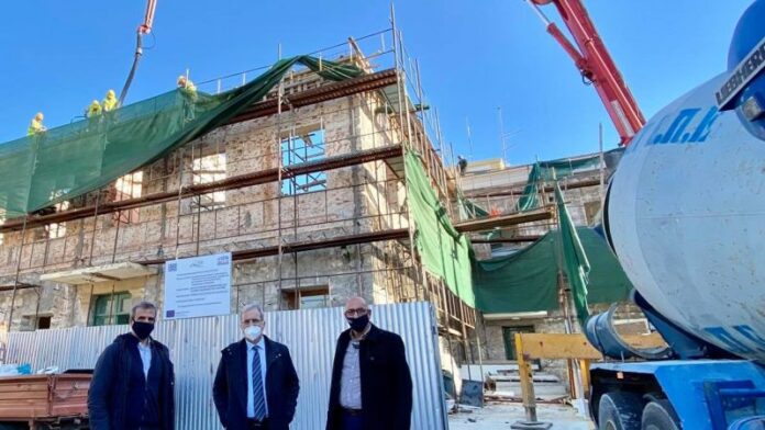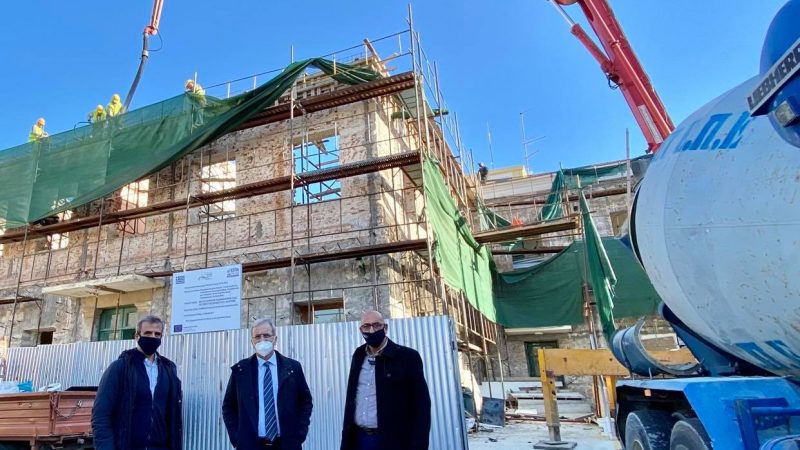 Εξελίσσονται με εντατικούς ρυθμούς οι εργασίες για την αναβάθμιση και διαρρύθμιση των κτιρίων 3 & 4 του Γενικού Νοσοκομείου Χίου, έγινε η σκυροδέτηση της στέγης. Το εργοτάξιο του Νοσοκομείου επισκέφθηκαν την Πέμπτη 26 Νοεμβρίου 2020 ο Αντιπεριφερειάρχης Χίου κ. Παντελής Μπουγδάνος, ο Εκτελεστικός Γραμματέας της Περιφέρειας Βορείου Αιγαίου κ. Απόστολος Αλατζάς και ο Θεματικός Αντιπεριφερειάρχης κ. Παναγιώτης Χριστόφας μαζί με τον επιβλέποντα μηχανικό του έργου προκειμένου να δουν από κοντά τις εργασίες και να ενημερωθούν από τον ανάδοχο του έργου για την εξέλιξη τους.