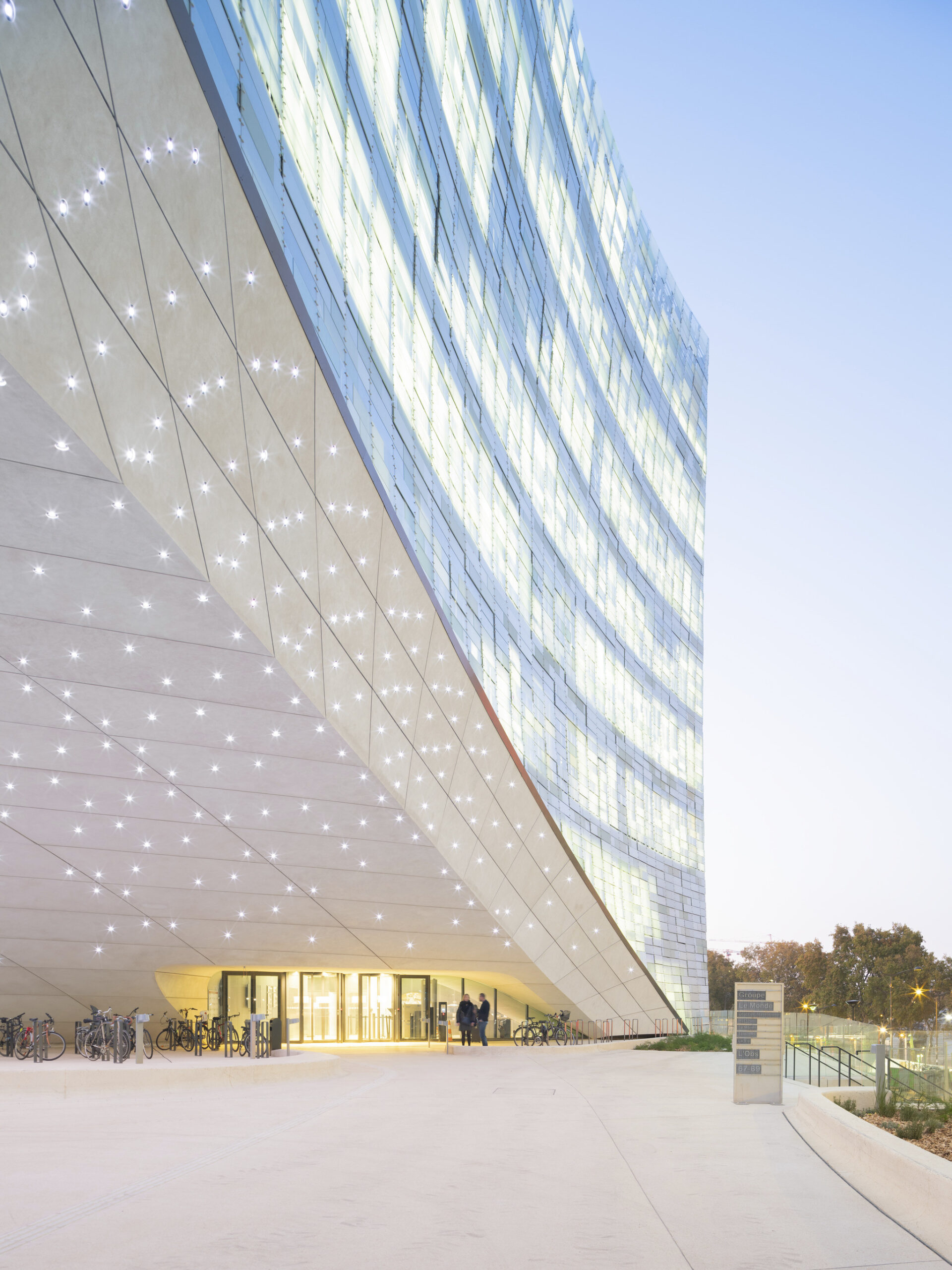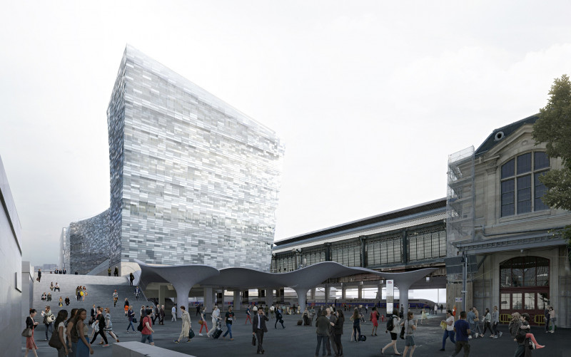 Μιας και οι σιδηροδρομικές γραμμές περνούν υπογείως κάτω από το κτήριο, το μήκους 80 μέτρων αρχιτεκτόνημα έχει την όψη μιας κοίλης δομής η οποία πατά στις δύο άκρες της σε δύο επταώροφους αρχιτεκτονικούς όγκους που συνδέονται μεταξύ τους με ένα τόξο από περίπλοκο χαλύβδινο δίκτυο.