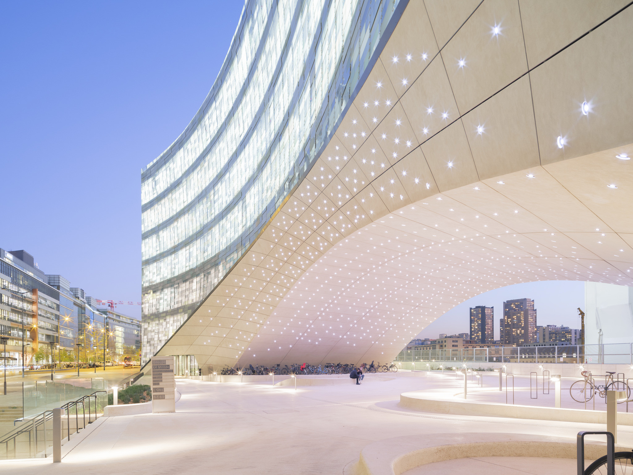 Στο 13ο διαμέρισμα του Παρισιού, η δομή έχει την όψη ενός αψιδωτού κτηρίου με ημιδιαφανές εξωτερικό περίβλημα και περιλαμβάνει μια πλατεία που επιτρέπει στο αρχιτεκτόνημα να ενσωματώνεται στη γειτονιά, αναφέρει το ΑΠΕ-ΜΠΕ.