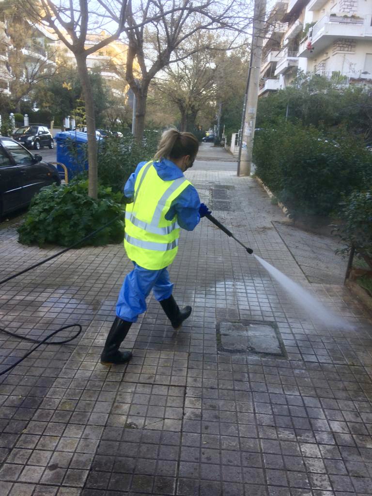 Πέρα από τις καθημερινές παρεμβάσεις καθαριότητας σε όλα τα σημεία της πόλης, κάθε Κυριακή, μία μεγάλη ομάδα ανθρώπων της καθαριότητας, με ανανεωμένο εξοπλισμό και σύγχρονα μέσα, σαρώνουν μία περιοχή, όχι μόνο με το σκούπισμα που γνωρίζαμε μέχρι πριν από λίγο καιρό αλλά, πλένοντας με καυτό νερό δρόμους, πεζοδρόμια, πλατείες και όλους τους δημόσιους χώρους.