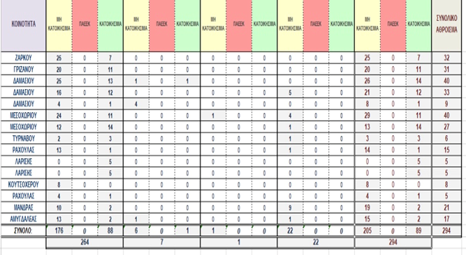 Έως το τέλος της σημερινής ημέρας έχουν διεξαχθεί αυτοψίες σε 294 κτήρια και σε 35 σχολικές μονάδες σε Κοινότητες του Δήμου Τυρνάβου και Ελασσόνας.