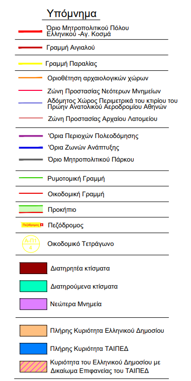 Με λίγα λόγια, η ουσία επί των ιδιοκτησιακών, ως είδηση, είναι στις τρεις τελευταίες κατηγορίες: με πορτοκαλί είναι οι εκτάσεις που θα έχει το Δημόσιο, με μπλέ είναι οι εκτάσεις που παίρνει σήμερα το ΤΑΙΠΕΔ και θα μεταβιβαστούν εν τέλει στον επενδυτή ΠΛΗΡΩΣ, και με σομόν διαγραμμισμένο είναι οι εκτάσεις που θα εκμεταλλευτεί για 99 χρόνια ο επενδυτής και μετά – αν έχει ο θεός – θα επιστρέψουν στο δημόσιο.