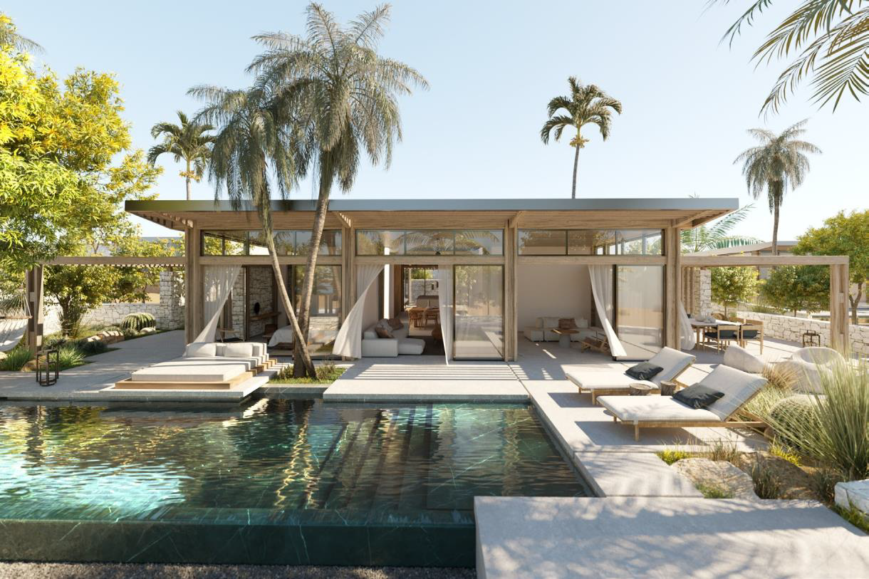 Το συγκρότημα, που θα έχει δύο πύλες εισόδου με διακριτές χρήσεις, για την είσοδο στο συγκρότημα των βιλών και στο κυρίως συγκρότημα, θα περιλαμβάνει ξενοδοχείο 117 κλειδιών που θα είναι υπό τη διαχείριση της αλυσίδας One & Only. Ακόμη, θα κάνουν την εμφάνισή τους 95 επιπλωμένα διαμερίσματα, τα οποία θα προέλθουν από την μετασκευή των 100 bungalows που διαθέτουν επιφάνεια 43 έως 49 τ.μ. Μιλάμε για 95 καμπάνες επειδή, οι πέντε από τις οικιστικές αυτές μονάδες θα συνενωθούν ανά δύο για να δημιουργήσουν σουίτες.