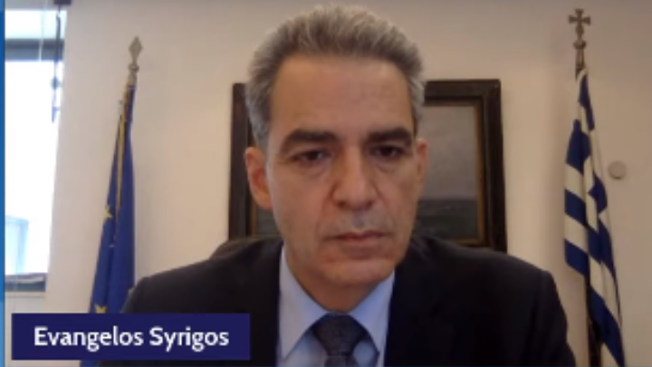 Ο ‘Αγγελος Συρίγος, μιλώντας στο υβριδικό συνέδριο «Thessaloniki Future Thinking Dialogues» του Ελληνοαμερικανικού Επιμελητηρίου.