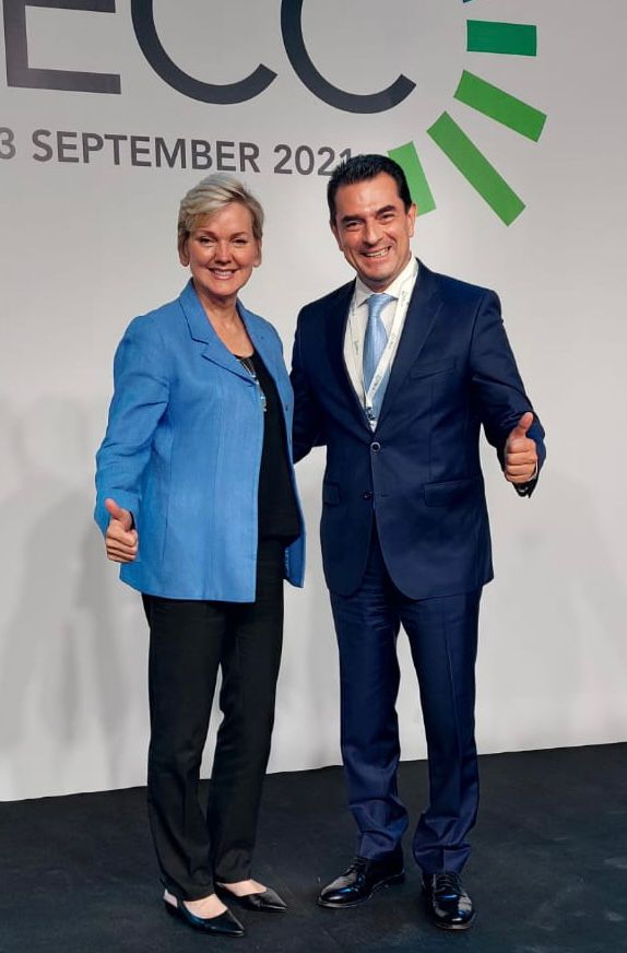 Ο Υπουργός Περιβάλλοντος και Ενέργειας, Κώστας Σκρέκας, συναντήθηκε με την Υπουργό Ενέργειας των ΗΠΑ, Jennifer Granholm, στο περιθώριο της Υπουργικής Διάσκεψης της διατλαντικής εταιρικής σχέσης για την ενέργεια και το κλίμα (P-TECC), η οποία πραγματοποιήθηκε στη Βαρσοβία.