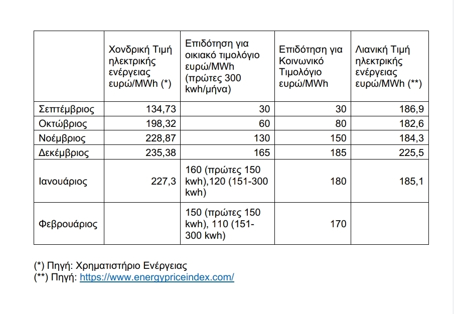 -Τον ίδιο μήνα, τον Ιανουάριο, η τιμή χονδρικής της ηλεκτρικής ενέργειας στην Ελλάδα ήταν 227,3 ευρώ ανά μεγαβατώρα. Το γεγονός ότι η λιανική διαμορφώνεται σε επίπεδα χαμηλότερα από την χονδρική τιμή, οφείλεται στις επιδοτήσεις που εφαρμόζονται το τελευταίο εξάμηνο και όπως όλα δείχνουν, θα συνεχιστούν το επόμενο διάστημα.