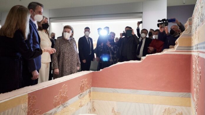 Ο κ. Μητσοτάκης που είναι ο πρώτος επισκέπτης του μουσείου ξεναγήθηκε για περίπου μια ώρα στους χώρους του, από την υπουργό Πολιτισμού Λίνα Μενδώνη και την προϊσταμένη της εφορείας Αρχαιοτήτων Χανίων Ελένη Παπαδοπούλου.