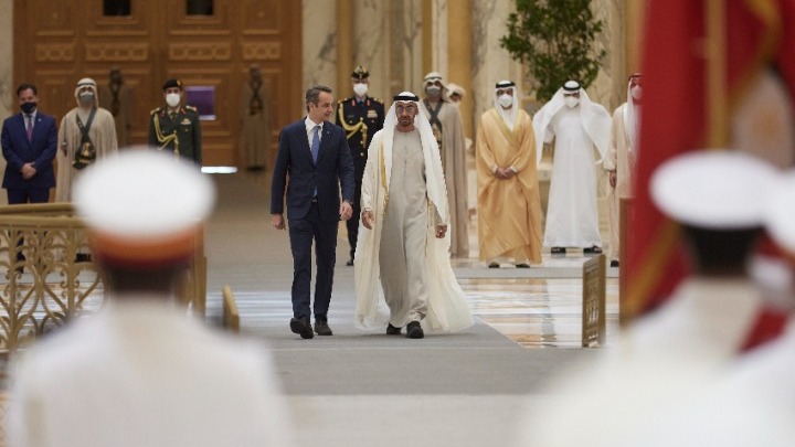 Πηγή Εικόνας: ΑΠΕ - ΜΠΕΟ πρωθυπουργός Κυριάκος Μητσοτάκης συναντήθηκε με τον Διάδοχο του Θρόνου του ‘Αμπου Ντάμπι Mohammed bin Zayed Al Nahyan, κατά την επίσημη επίσκεψη που πραγματοποιεί ο πρωθυπουργός στα Ηνωμένα Αραβικά Εμιράτα. Στη συνάντηση επιβεβαιώθηκε ο στρατηγικός χαρακτήρας των σχέσεων Ελλάδας και Ηνωμένων Αραβικών Εμιράτων.