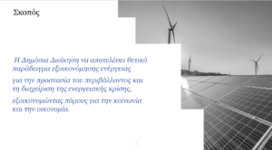 Είναι μια παρέμβαση απαραίτητη, γιατί το ενεργειακό κόστος για το Δημόσιο, έχει σημειώσει κατακόρυφη αύξηση.