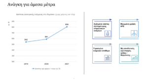 -Δεύτερον, προωθούμε άμεσα μέτρα με στόχο τη μείωση της κατανάλωσης κατά 10% το επόμενο διάστημα, αλλά και μέσο – μακροπρόθεσμα μέτρα, με στόχο τη μείωση της τελικής ετήσιας κατανάλωσης ενέργειας στον δημόσιο τομέα σε ποσοστό τουλάχιστον 30% μέχρι το 2030.