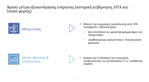 -Τη διασφάλιση προσιτού κόστους ενέργειας για τους καταναλωτές μέσα από άμεσες επιδοτήσεις στους λογαριασμούς, αλλά και την προώθηση της εξοικονόμησης ενέργειας.