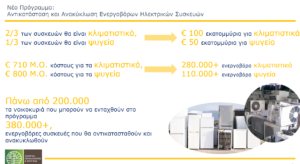 Τέλος, τονίζεται ότι το Πρόγραμμα απαιτεί την αντικατάσταση/απόσυρση μίας παλιάς συσκευής για κάθε νέα που επιδοτείται η αγορά της.