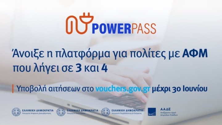 Άνοιξε πριν από λίγη ώρα η πλατφόρμα του Power Pass και για τους κατόχους με ΑΦΜ που λήγει σε αριθμό 3 και 4, ενώ οι πολίτες που υπέβαλαν τις αιτήσεις τους ξεπερνούν τις 300.000. Aυτό ανέφερε χαρακτηριστικά στον λογαριασμό του στο Twitter ο υπουργός Ψηφιακής διακυβέρνησης, Κυριάκος Πιερρακακης. Να σημειώσουμε ότι η επιδότηση αφορά στους λογαριασμούς ρεύματος πρώτης κατοικίας ή φοιτητικής στέγης εντός Ελλάδος, που εκδόθηκαν κατά το διάστημα από 01-12-2021 έως και 31-05-2022. Το ποσοστό επιδότησης ανέρχεται στο 60% της αύξησης της τιμής ρεύματος της πρώτης κατοικίας και, ανάλογα με το ύψος των λογαριασμών, μπορεί να ανέλθει μέχρι και στο ποσό των 600 ευρώ. Η διαδικασία υποβολής αιτήσεων θα διαρκέσει μέχρι και την 30ή Ιουνίου. Κατά τις πρώτες ημέρες της λειτουργίας της, η πλατφόρμα θα ανοίγει σταδιακά για τους δικαιούχους, ανάλογα με το τελευταίο ψηφίο του ΑΦΜ τους.