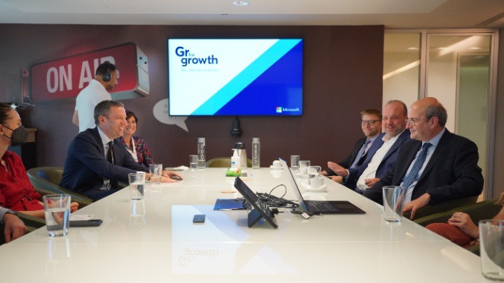 «Οι ψηφιακές δεξιότητες έχουν έρθει με ορμή στη ζωή μας, γι’ αυτό πρέπει να κάνουμε την κατάρτιση σε αυτές “όπλο” όλων, εργαζομένων, ανέργων, ιδιαίτερα των νέων, για το μέλλον». Αυτό τόνισε ο υπουργός Εργασίας και Κοινωνικών Υποθέσεων, Κωστής Χατζηδάκης, που επισκέφθηκε σήμερα, μαζί με τον διοικητή της Δημόσιας Υπηρεσίας Απασχόλησης (ΔΥΠΑ), Σπύρο Πρωτοψάλτη, τα κεντρικά γραφεία της Microsoft Ελλάδος.