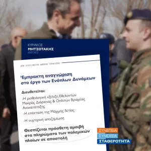 - Άμεση διευθέτηση αιτημάτων των ενόπλων δυνάμεων όπως η μισθολογική εξέλιξη οπλιτών μακράς διαρκείας, πρόσθετη αμοιβή στα πληρώματα πολεμικών πλοίων σε αποστολή.