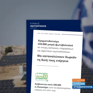 - Οι δικαιούχοι του «Ανακυκλώνω – Αλλάζω Συσκευή» αυξάνονται κατά 240.000 με πόρους από το πρόγραμμα δημοσίων επενδύσεων. Θα εξασφαλιστεί χρηματοδότηση μικρών φωτοβολταϊκών για 250.000 επιχειρήσεις.