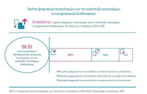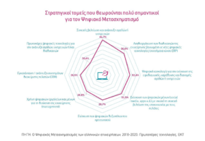 Οι ψηφιακές τεχνολογίες είναι εξίσου σημαντικές για την οργάνωση της εργασίας και τη διοίκηση των επιχειρήσεων. Στο διάστημα 2018-2020, το 32,8% των επιχειρήσεων αξιολογούν τη χρήση ψηφιακών εργαλείων για την ενίσχυση της επικοινωνίας και της ανταλλαγής ιδεών μεταξύ του προσωπικού ως πολύ σημαντική μέθοδο οργάνωσης της εργασίας για τη διοίκησή τους. Μάλιστα, η τιμή αυτή είναι αυξημένη σχεδόν κατά το διπλάσιο σε σχέση με την προηγούμενη τριετία.
