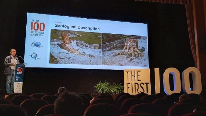 Απονεμήθηκε σήμερα το πιστοποιητικό για την ένταξη του Απολιθωμένου Δάσους Λέσβου στα 100 πρώτα Μνημεία Γεωλογικής Κληρονομιάς. Η απονομή πραγματοποιήθηκε στο ειδικό συνέδριο που πραγματοποιείται για τον εορτασμό της συμπλήρωσης 60 ετών από την ίδρυση της Διεθνούς Ένωσης Γεωλογικών Επιστημών σε συνεργασία με την UNESCO στη Ζουμάια (Ακτή των Βάσκων, περιοχή που έχει αναγνωρισθεί ως Παγκόσμιο Γεωπάρκο UNESCO) στην Ισπανία.