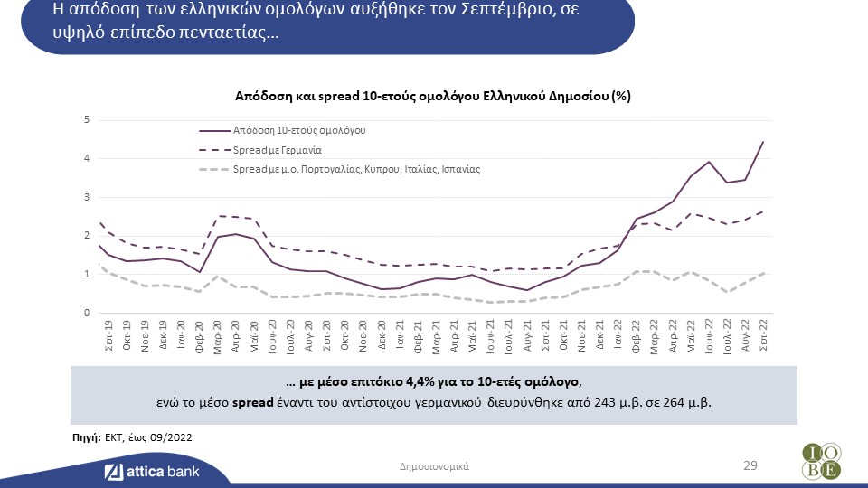 - Το κόστος νέου δημόσιου δανεισμού αυξάνεται, με τη διαφορά από τον πυρήνα της Ευρωζώνης να διευρύνεται.
