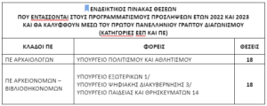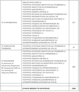 Ακολουθεί ο πίνακας με την κατανομή των θέσεων στους φορείς ανά κλάδο/ειδικότητα: