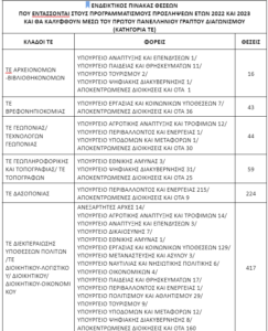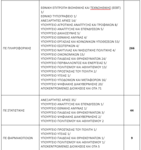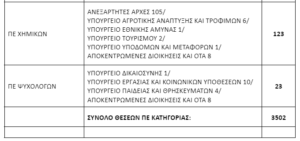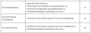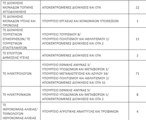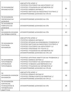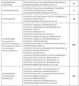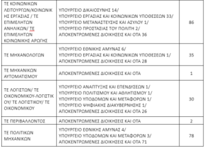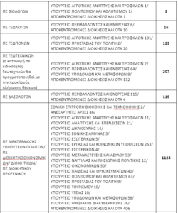 Ακολουθεί ο πίνακας με την κατανομή των θέσεων στους φορείς ανά κλάδο/ειδικότητα: