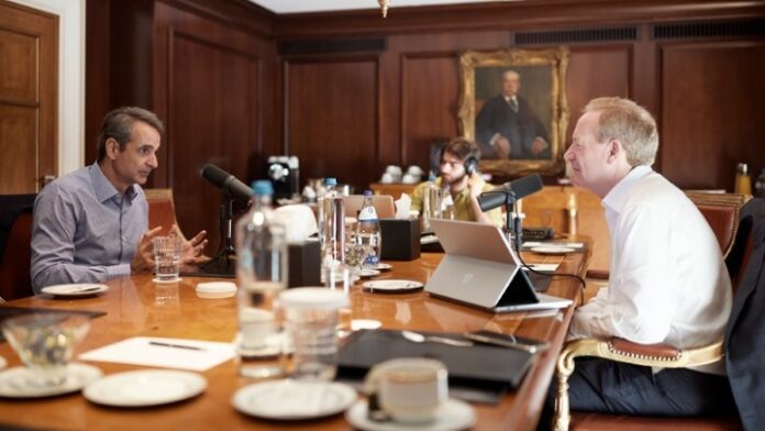Πηγή Εικόνας: ΑΠΕ-ΜΠΕ / ΓΡΑΦΕΙΟ ΤΥΠΟΥ ΠΡΩΘΥΠΟΥΡΓΟΥΟ πρωθυπουργός Κυριάκος Μητσοτάκης συμμετείχε στο podcast «Tools and Weapons», ως καλεσμένος του προέδρου της Microsoft, Μπραντ Σμιθ. Στο πλαίσιο της συζήτησής τους μίλησαν για τις αλλαγές που έχουν γίνει στη χώρα μας λόγω της οικονομικής ανάκαμψης που συντελείται μετά από μια δεκαετία ύφεσης, τον ψηφιακό μετασχηματισμό και όπως επεσήμανε εισαγωγικά ο Μπραντ Σμιθ, για «τη φιλοδοξία της Ελλάδας να συντηρήσει, με ψηφιακά εργαλεία, αρχαίους χώρους πολιτισμού και για την προσπάθεια που χρειάζεται ώστε να προστατευτεί μία από τις παλαιότερες και καλύτερες συνεισφορές της Ελλάδας: η ίδια η δημοκρατία».