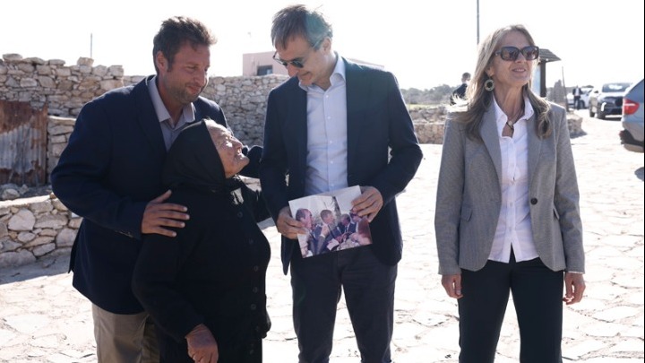 Τελευταίος σταθμός της επίσκεψης του πρωθυπουργού ήταν το χωριό Άμπελος, όπου είχε την ευκαιρία να συναντήσει, να ανταλλάξει ευχές και να συζητήσει με την κ. Χριστίνη, μία εκ των γηραιότερων μόνιμων κατοίκων του νησιού.