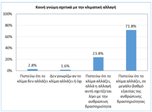 - Οι πολίτες αναγνωρίζουν την ανθρώπινη ευθύνη απέναντι στο περιβάλλον, έχουν επίγνωση της κλιματικής αλλαγής, την οποία αντιλαμβάνονται κυρίως ως αποτέλεσμα της ανθρώπινης δραστηριότητας, αλλά είναι αισιόδοξοι ότι η τεχνολογική πρόοδος θα δώσει λύσεις στο πρόβλημα της κλιματικής αλλαγής.