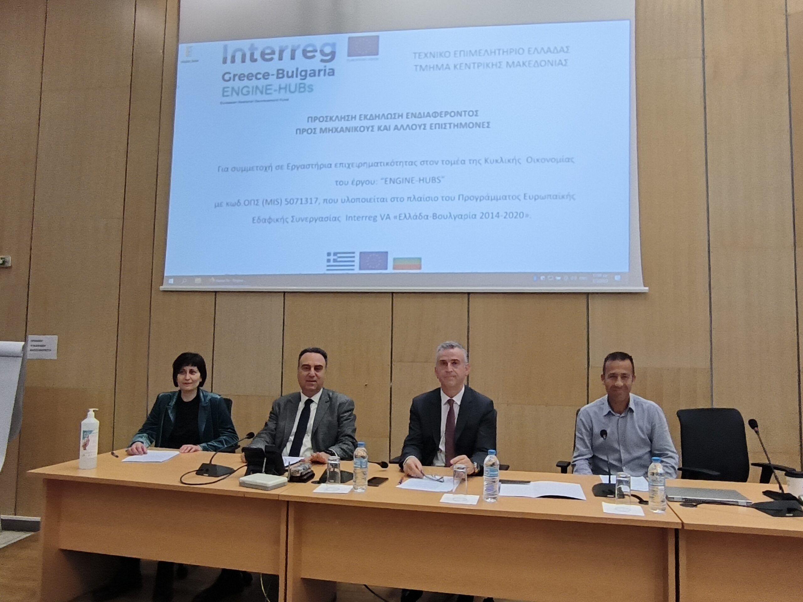 Το ΤΕΧΝΙΚΟ ΕΠΙΜΕΛΗΤΗΡΙΟ ΕΛΛΑΔΑΣ – ΤΜΗΜΑ ΚΕΝΤΡΙΚΗΣ ΜΑΚΕΔΟΝΙΑΣ (ΤΕΕ/ΤΚΜ) συμμετέχει ως επικεφαλής εταίρος στο έργο «Creating “Circular” Business by young ENGINEers at the cross-border area of Greece-Bulgaria» με ακρωνύμιο “ENGINE-HUBs”, το οποίο συγχρηματοδοτείται από το Πρόγραμμα Ευρωπαϊκής Εδαφικής Συνεργασίας Interreg VA «Ελλάδα-Βουλγαρία 2014-2020».