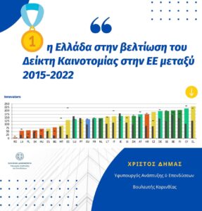 «Στην 1η θέση η Ελλάδα στην βελτίωση του Δείκτη Καινοτομίας στην ΕΕ μεταξύ 2015-2022, σύμφωνα με στοιχεία της Ευρωπαϊκής Επιτροπής.