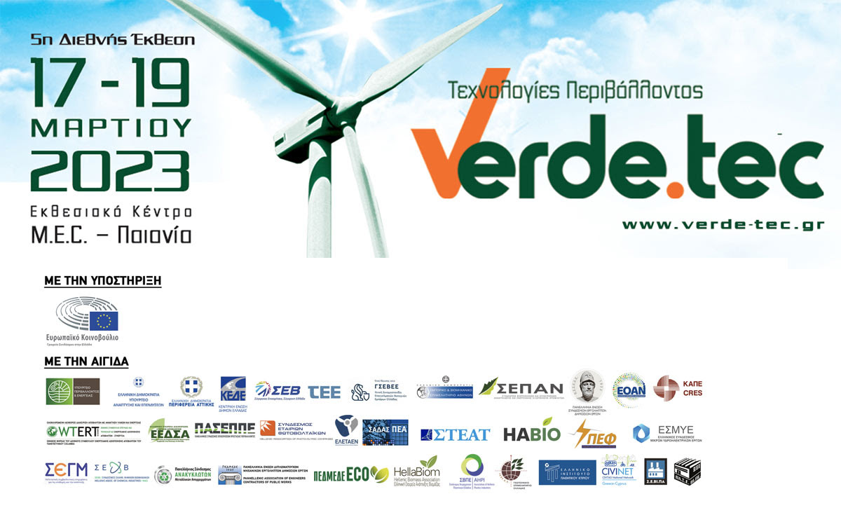 Το απόλυτο σημείο συνάντησης για τις τεχνολογίες περιβάλλοντος, την κυκλική οικονομία και τις έξυπνες πόλεις, η 5 διεθνής έκθεση Verde.tec / Τεχνολογίες Περιβάλλοντος ξεκινά σήμερα Παρασκευή, 17 Μαρτίου 2023, στις 10:00 το πρωί! Η μοναδική εξειδικευμένη έκθεση για το περιβάλλον στη χώρα μας θα πραγματοποιηθεί στο MEC Παιανίας και θα ολοκληρωθεί την Κυριακή 19 Μαρτίου, στις 19:00 το βράδυ.