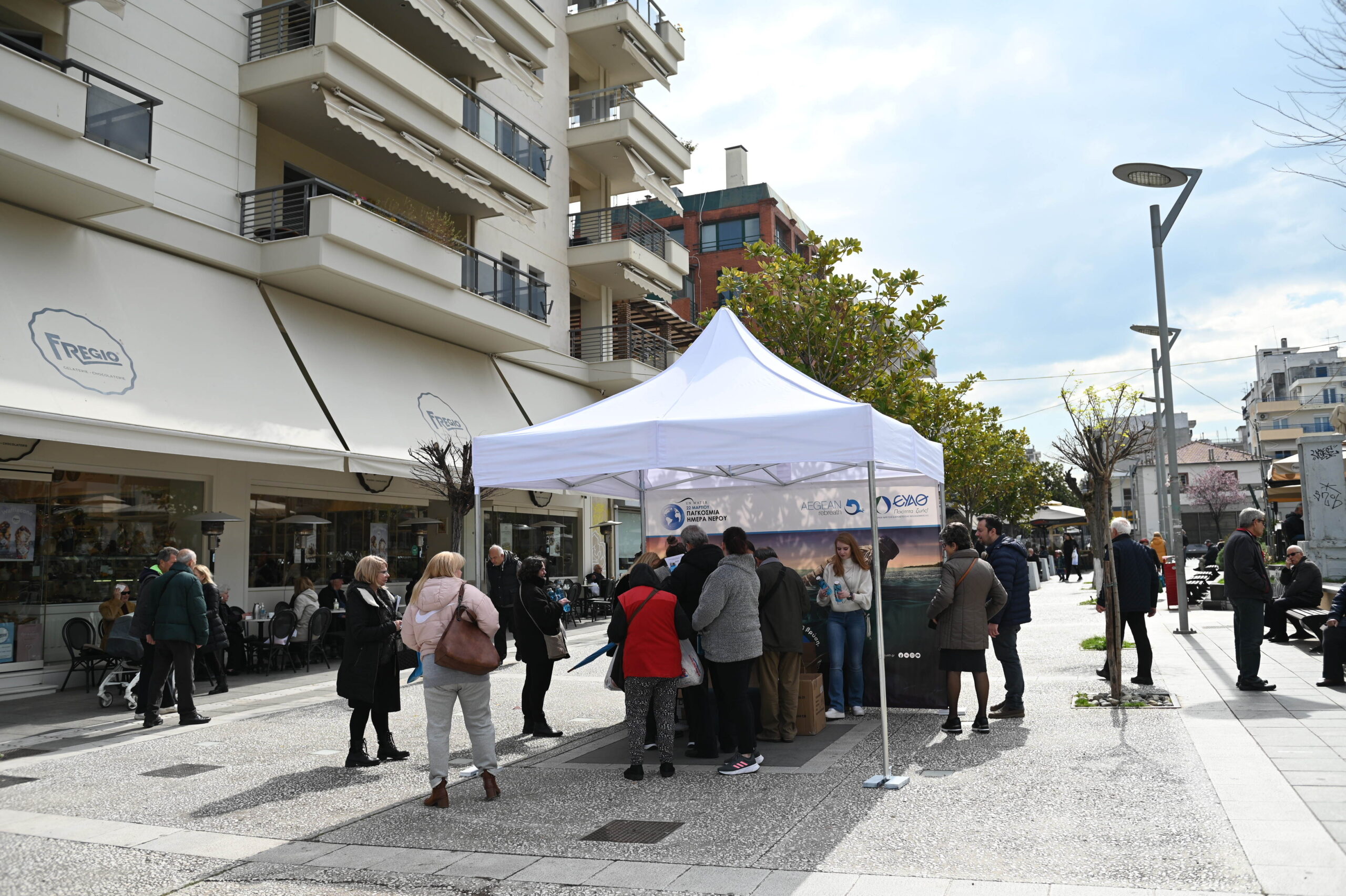 Πηγή Εικόνας: ΕΥΑΘ ΑΕ - ΑΠΕ ΜΠΕΤην εμπιστοσύνης τους στο νερό της βρύσης, αλλά και την αγωνία τους για τη ρύπανση των θαλασσών από τις πλαστικές συσκευασίες, επαναβεβαίωσαν σήμερα, Παγκόσμια Ημέρα Νερού, οι Θεσσαλονικείς που συμμετείχαν στην ενημερωτική δράση της ΕΥΑΘ ΑΕ στο κέντρο της πόλης, και στην Καλαμαριά, η οποία πραγματοποιήθηκε σε συνεργασία με τον οργανισμό «Aegean Rebreath», που εργάζεται για την προστασία του θαλάσσιου περιβάλλοντος.