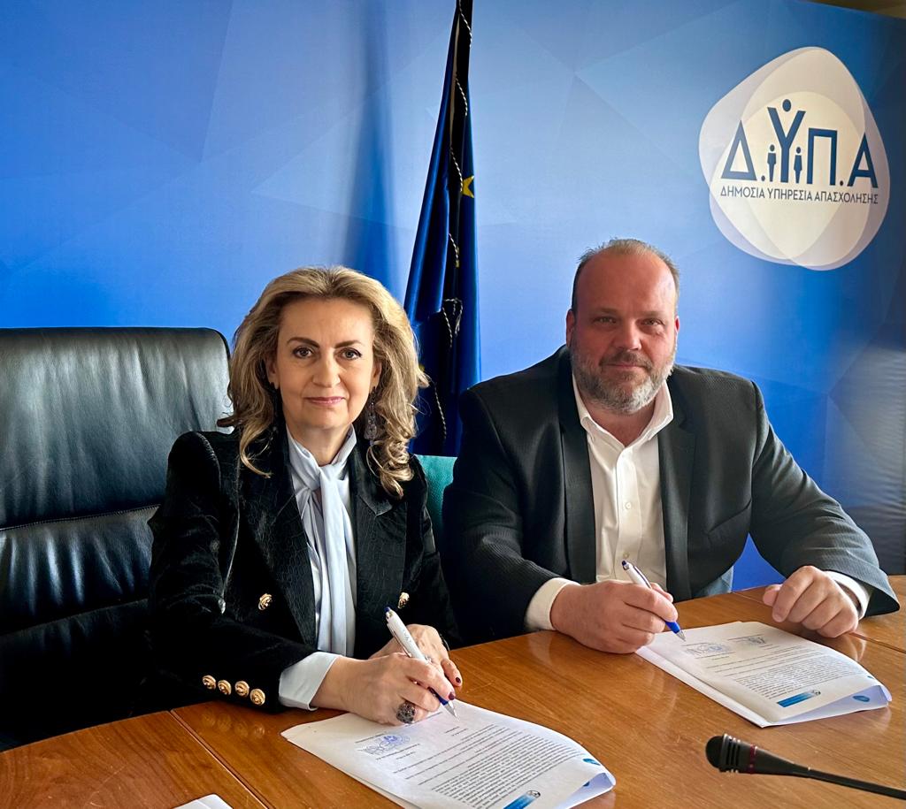 Πηγή Εικόνας: απε - μπεΜνημόνιο συνεργασίας υπέγραψαν σήμερα ο διοικητής της Δημόσιας Υπηρεσίας Απασχόλησης (ΔΥΠΑ) Σπύρος Πρωτοψάλτης και η πρόεδρος του Εμπορικού και Βιομηχανικού Επιμελητηρίου Αθηνών (ΕΒΕΑ) Σοφία Κουνενάκη-Εφραίμογλου.