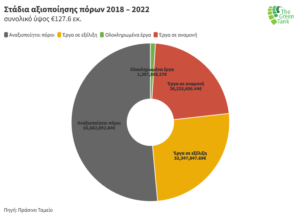 - Από το 2018 έχουν συγκεντρωθεί συνολικά €127.7 εκ. Από αυτούς τους πόρους έχουν διατεθεί και αξιοποιούνται την τρέχουσα περίοδο τα €62 εκ (48.5%) που αντιστοιχούν στους πόρους για τα έτη 2018 και 2019. Αναξιοποίητοι παραμένουν ακόμη οι πόροι των ετών 2020, 2021 και 2022 ύψους €65.7 εκ (51.5%).