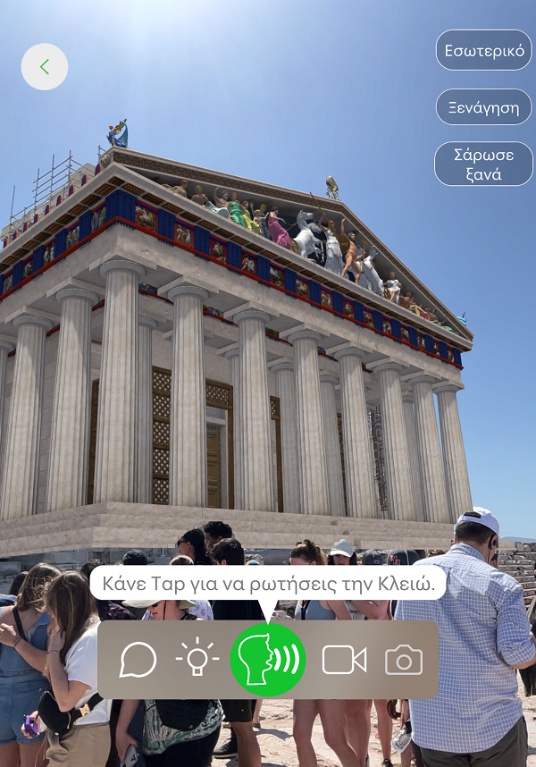 Επαυξημένη Πραγματικότητα (Augmented Reality – AR) σε συνδυασμό με real time conversational Bot (συνομιλία σε πραγματικό χρόνο) σε μορφή Avatar το οποίο λειτουργεί με Τεχνητή Νοημοσύνη (Artificial Intelligence – AI) ενώνονται δημιουργώντας μια διαφορετική εμπειρία γνώσης, ενδεικτική των δυνατοτήτων της τεχνολογίας σήμερα.