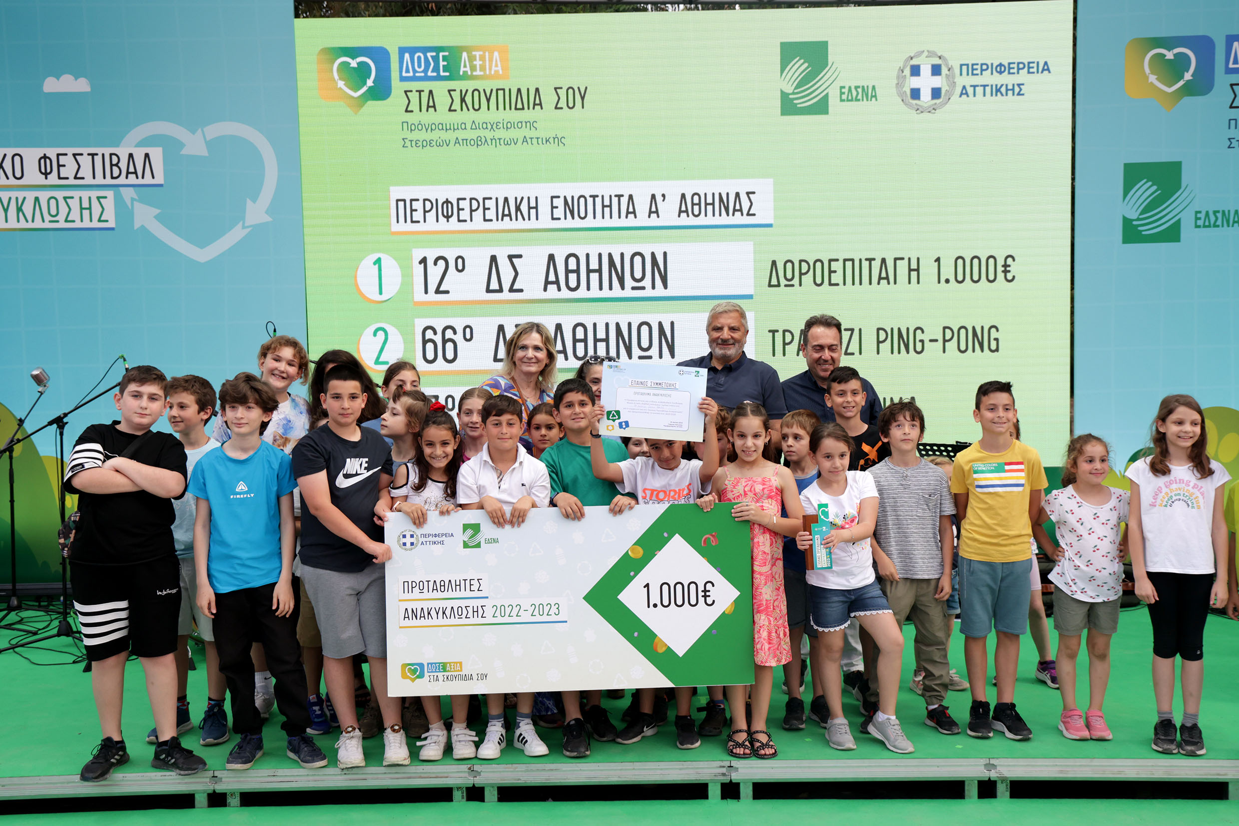 Η λαμπρή εκδήλωση ξεκίνησε με τη χορωδία μαθητών του Δημοτικού Σχολείου Σκάλας Ωρωπού. Τα βραβεία, τα οποία παρέδωσε ο Περιφερειάρχης Αττικής Γ. Πατούλης, περιελάμβαναν χρηματικά έπαθλα, δώρα άθλησης και ψυχαγωγίας στα τρία πρώτα σχολεία κάθε εκπαιδευτικής διεύθυνσης που συγκέντρωσαν την μεγαλύτερη ποσότητα ανακυκλώσιμων υλικών (1000 ευρώ για το 1ο σχολείο , ένα τραπέζι πινγκπόγκ για το 2ο, ένα ηχοσύστημαγια το 3ο), ενώ για τα τρία σχολεία που ανακηρύχθηκαν «πρώτα των πρώτων», δόθηκαν επιπλέον χρηματικά έπαθλα.