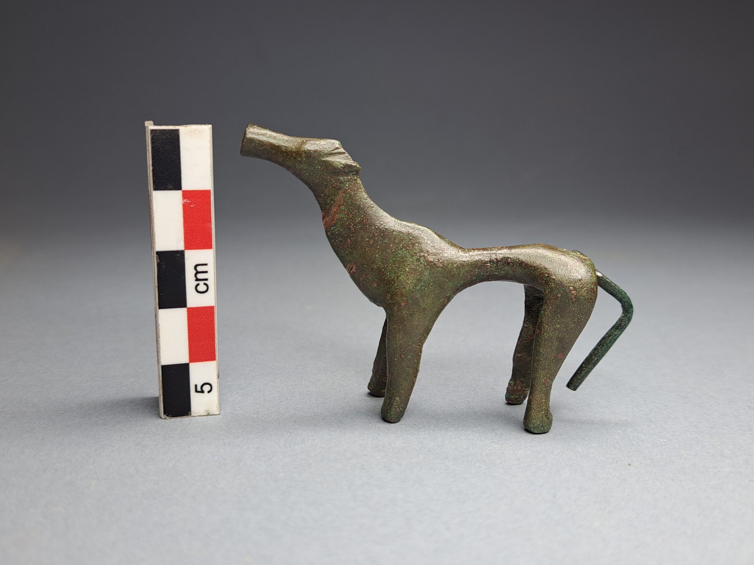 Επίσης, στα ανασκαφικά τετράγωνα ανατολικά των οικοδομημάτων, ήρθε στο φως μεγάλη ποσότητα κεραμικής που χρονολογείται στον 8ο και 9ο αι. π.Χ, πιστοποιώντας τη λατρευτική χρήση του χώρου ήδη από το 850 π.Χ. Στα αναθήματα προς τη θεότητα που ήταν αφιερωμένος αυτός ο ιερός τόπος, συγκαταλέγονται πήλινα και χάλκινα ειδώλια, από τα οποία ξεχωρίζει το χάλκινο ειδώλιο ζώου, πιθανώς σκύλου, πήλινοι τροχοί αμαξών, χάλκινες πόρπες και περόνες (εξαρτήματα στερέωσης των ενδυμάτων), αλλά και σιδερένια όπλα, ενώ ενδιαφέρον είχε η αποκάλυψη μίας χρυσής ψήφου (εξάρτημα περιδεραίου), εύρημα σπάνιο στα ιερά της Αιγιάλειας.