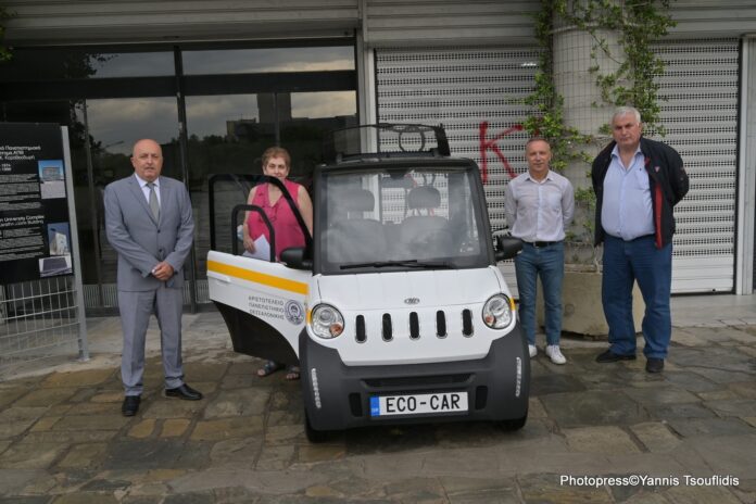 Πηγή Εικόνας: απε - μπεΔύο ηλεκτρικά αυτοκίνητα προμηθεύεται το Αριστοτέλειο Πανεπιστήμιο Θεσσαλονίκης, στο πλαίσιο δράσης για την προώθηση της βιώσιμης κινητικότητας και σε συνδυασμό με την δράση της ενεργειακής αναβάθμισης του Νέου Κτιρίου της Φιλοσοφικής Σχολής που θα αρχίσει τον επόμενο μήνα. Σήμερα, παρουσία του αντιπρύτανη Οικονομικών, Προγραμματισμού και Ανάπτυξης, καθηγητή Χαράλαμπου Φείδα, έγινε στο Πανεπιστήμιο η παραλαβή ενός διθέσιου ηλεκτρικού αυτοκινήτου, ενώ μέχρι το τέλος του χρόνου αναμένεται η παραλαβή και ενός πενταθέσιου.