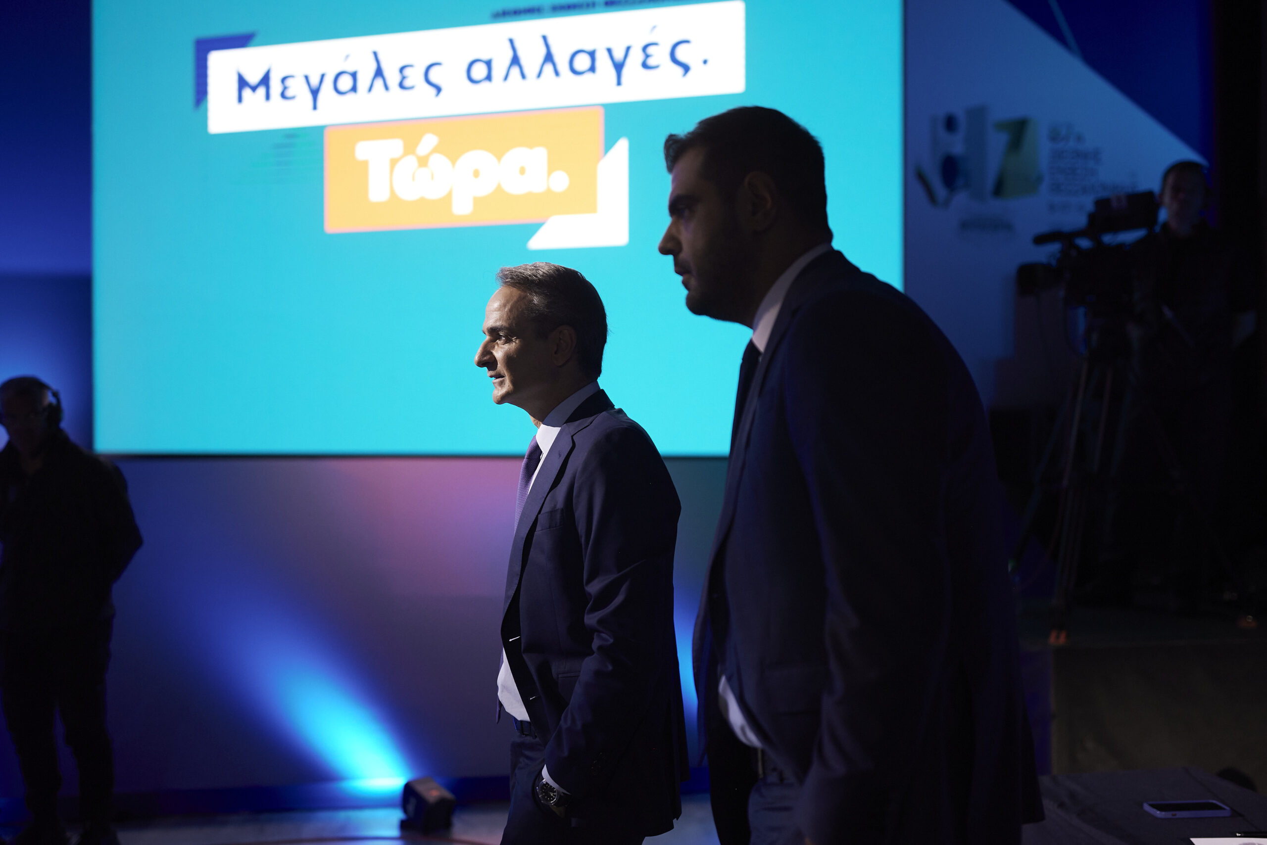 (Ξένη Δημοσίευση) Ο πρωθυπουργός Κυριάκος Μητσοτάκης και ο κυβερνητικός εκπρόσωπος Παύλος Μαρινάκης προσέρχονται στην καθιερωμένη συνέντευξη τύπου στο Συνεδριακό Κέντρο «Ιωάννης Βελλίδης» στο πλαίσιο της 87ης ΔΕΘ στη Θεσσαλονίκη, την Κυριακή 17 Σεπτεμβρίου 2023. Η 87η Διεθνής Έκθεση Θεσσαλονίκης (ΔΕΘ) άνοιξε τις πύλες της από τις 9 έως τις 17 Σεπτεμβρίου και παράλληλα με το αμιγώς εκθεσιακό σκέλος της διαθέτει ένα πολυδιάστατο πρόγραμμα εκδηλώσεων, για τον πολιτισμό, την οικονομία, την κοινωνία, την τεχνολογία και τον αθλητισμό. Η Βουλγαρία συμμετέχει φέτος ως Τιμώμενη Χώρα. ΑΠΕ-ΜΠΕ/ΓΡΑΦΕΙΟ ΤΥΠΟΥ ΠΡΩΘΥΠΟΥΡΓΟΥ/ΔΗΜΗΤΡΗΣ ΠΑΠΑΜΗΤΣΟΣ
