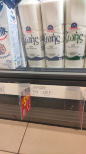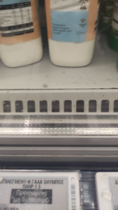 Ωστόσο θετική είναι η εμφάνιση μεγάλης γαλακτοβιομηχανίας, η οποία από την περασμένη εβδομάδα με τη σήμανση του -5 στο 1,5 λίτρο γάλα δείχνει ότι η τιμή έπεσε στα 2,6 ευρώ από 2,73 ευρώ που ήταν η τιμή πριν τη μείωση.