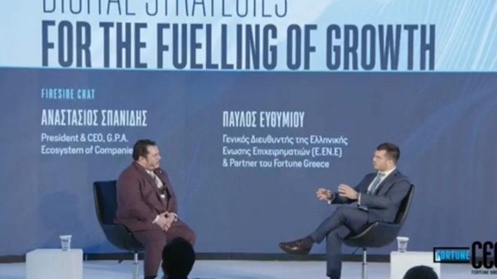 Τον πρωταγωνιστικό αυτό ρόλο της στρατηγικής προς τον δρόμο του ψηφιακού μετασχηματισμού, στο επιχειρείν αλλά και γενικότερα σε επίπεδο οργανισμών και κρατών, ανέδειξε ο πρόεδρος και διευθύνων σύμβουλος του ελληνικού πολυεθνικού ομίλου G.P.A Ecosystem of Companies, Αναστάσιος Σπανίδης σε συζήτηση που είχε με το Παύλo Ευθυμίου, γενικό διευθυντή της Ελληνικής Ένωσης Επιχειρηματιών (ΕΕΝΕ) & Partner του FortuneGreece στο συνέδριο Fortune Greece CEO Initiative.